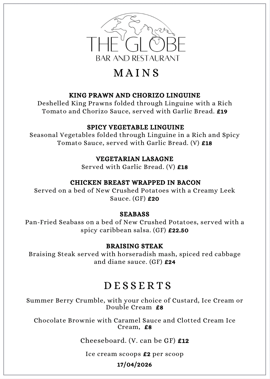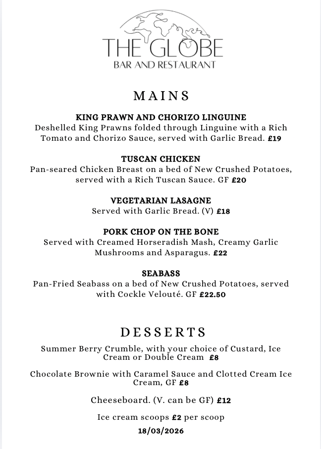 We aim to change our food menus seasonally throughout the year, please keep a look out on our social media platforms for any specials or menu changes.